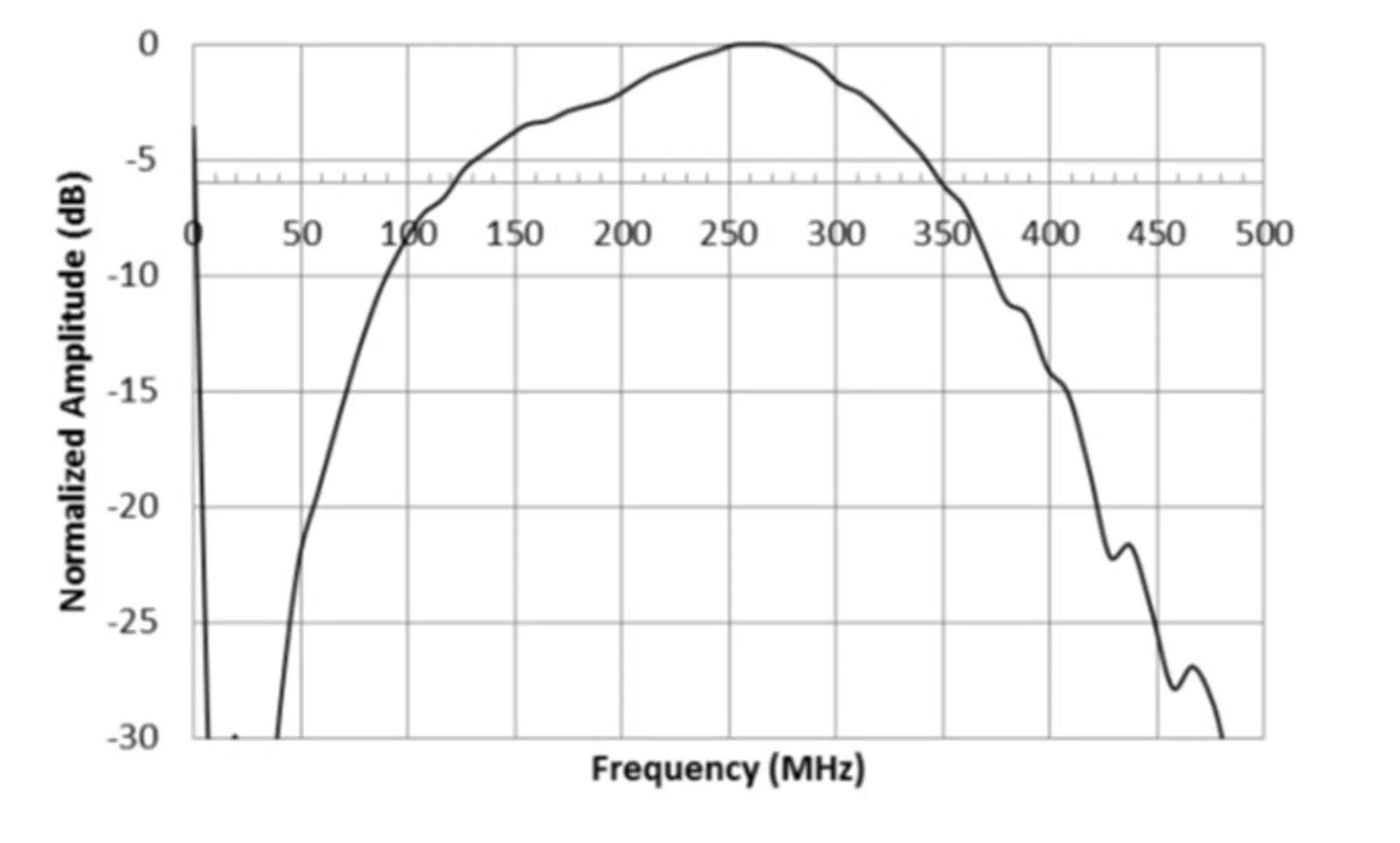 A typical delay-line echo from an Imaginant high-frequency transducer is shown below left. This well-damped transducer exhibits a 270 MHz peak frequency and broad bandwidth as indicated in the echo's frequency spectrum shown below right.